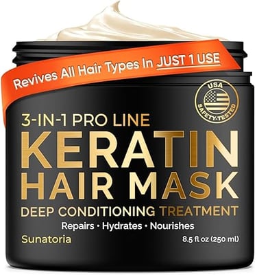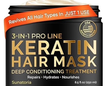 Unique Keratin Formula - Hair mask and conditioner for dry hair with Vitamin E, Omega 3, and 9. Replenishes shine, increases moisture and elasticity. Ideal hair treatment for dry damaged hair.