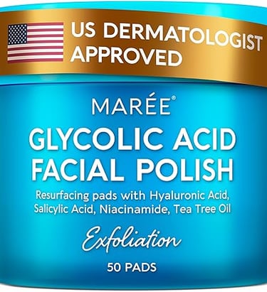 MARÉE Glycolic Acid Pads treatment. Gently exfoliate and cleanse. Helping to smooth skin texture and refine pores.