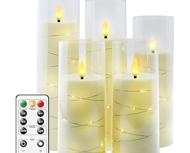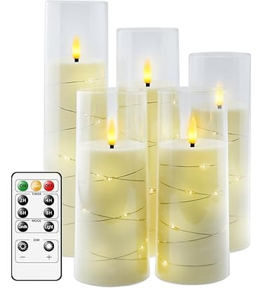 Create a warm and inviting atmosphere with our pack of 5 flameless candles. These LED candles feature a built-in embedded light string that mimics the gentle flicker of real flames, adding a touch of elegance to any space